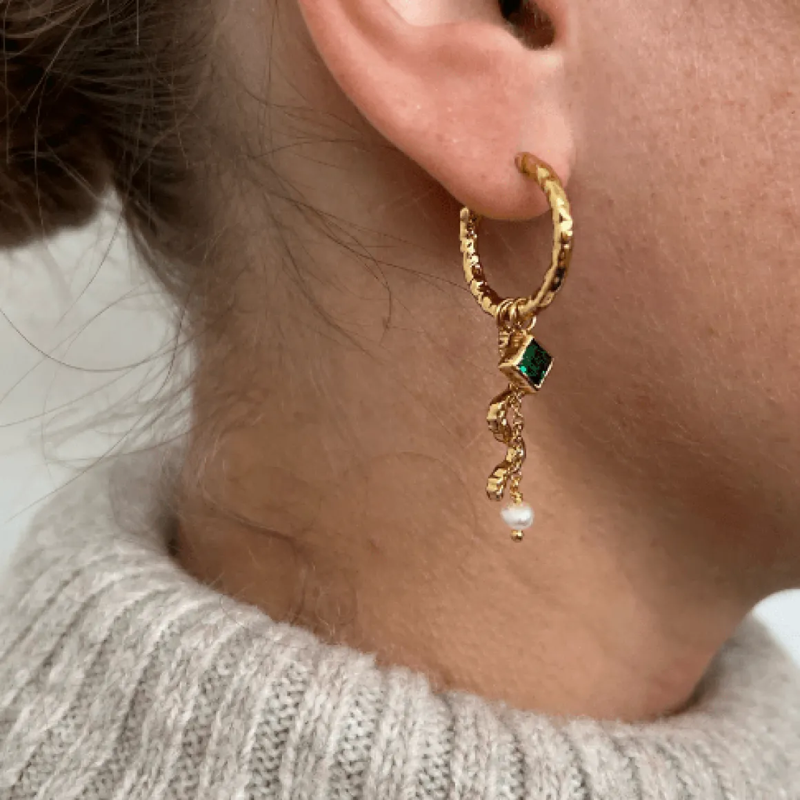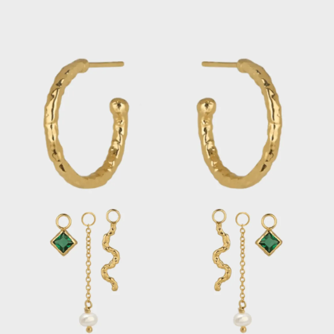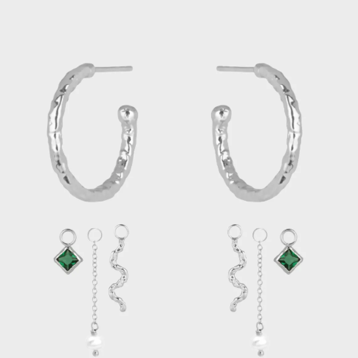 2 x Square Charm m. grøn sten