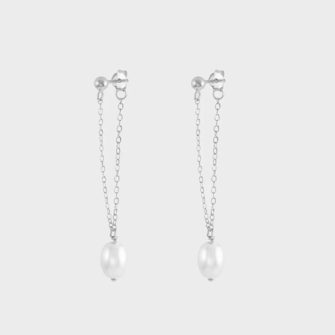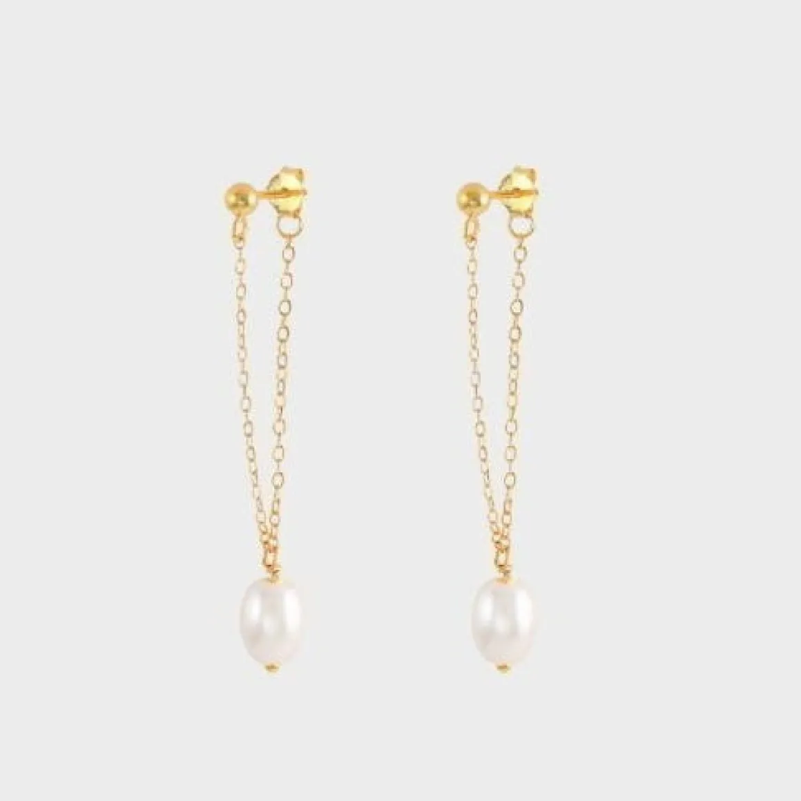 Smukke og klassiske kædeøreringe med perle. De er både tidsløse og simple – og kan styles med vores andre perleøreringe.
