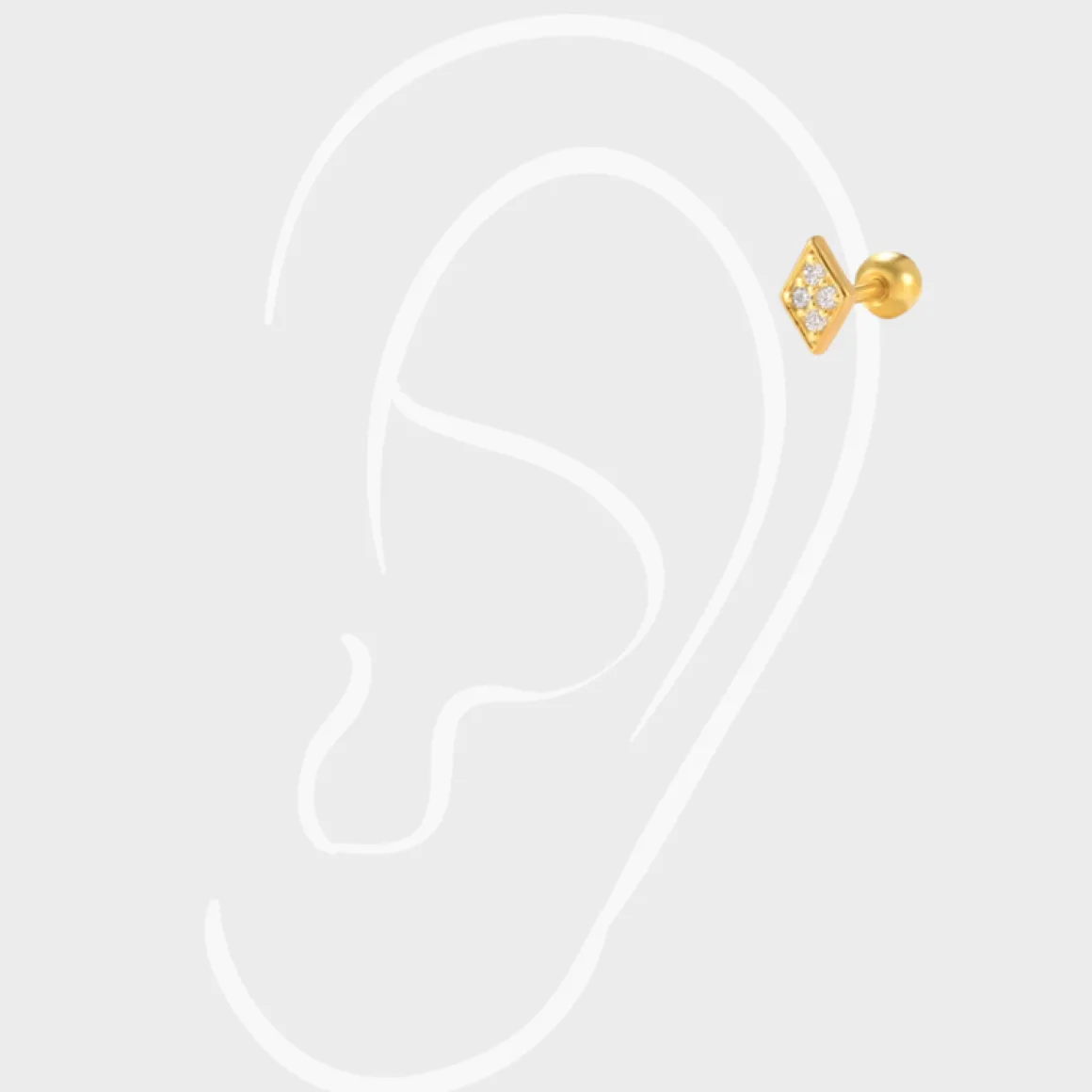Denne lille og diskrete piercing er formet som en diamant og udsmykket med små funklende sten, der glimter smukt, når de fanger lyset. Perfekt til at tilføje et subtilt strejf af elegance til dit look, uden at være for iøjnefaldende.