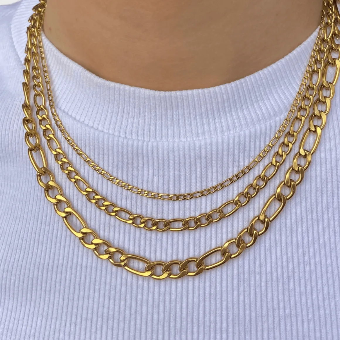 Vores Figaro kollektion, består af vores kæde halskæde, kæde armbånd og kæde øreringe. Alle smykkerne er en del af vores Waterproof-serie, der gør dem holdbare overfor ferskvand. Denne chunky halskæde følger en af de helt store trends, med fede ankerkæde smykker; også kaldet Panzer smykker. Disse panser smykker har været moderne i mange år, men er nu nået til den yngre målgruppe. Det fede ved smykkerne er deres unisex udseende, der gør at kollektionen kan bruges af alle uanset køn, alder eller andet. Er du interesseret i vores andre Figaro smykker, så kan du finde armbåndet her – og alle vores andre vandfaste smykker her.