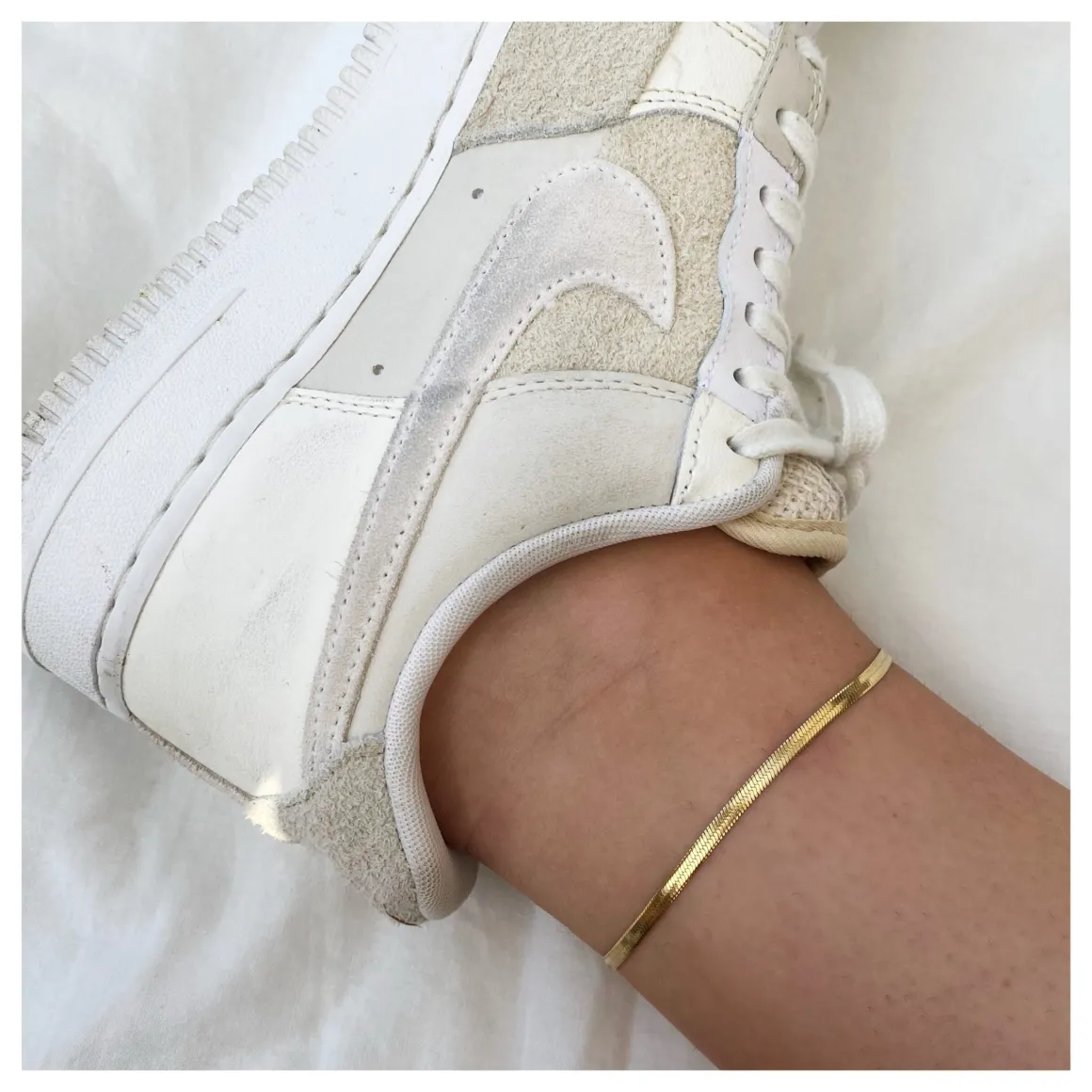 Vores slangekæde ankelkæde er et moderne men samtidig tidsløst smykke der går med det meste! En simpel ankelkæde i en flad slangekæde med forlænger – så du kan justere størrelse til din ankel. Slangeankelkæder er blevet moderne grundet det tidsløse udtryk. Ankelkæden i slange kæde er på en måde simpel og skiller sig samtidig ud med det lidt rå udtryk slangekæde giver. Vores ankelkæde er et must have i din smykkesamling!