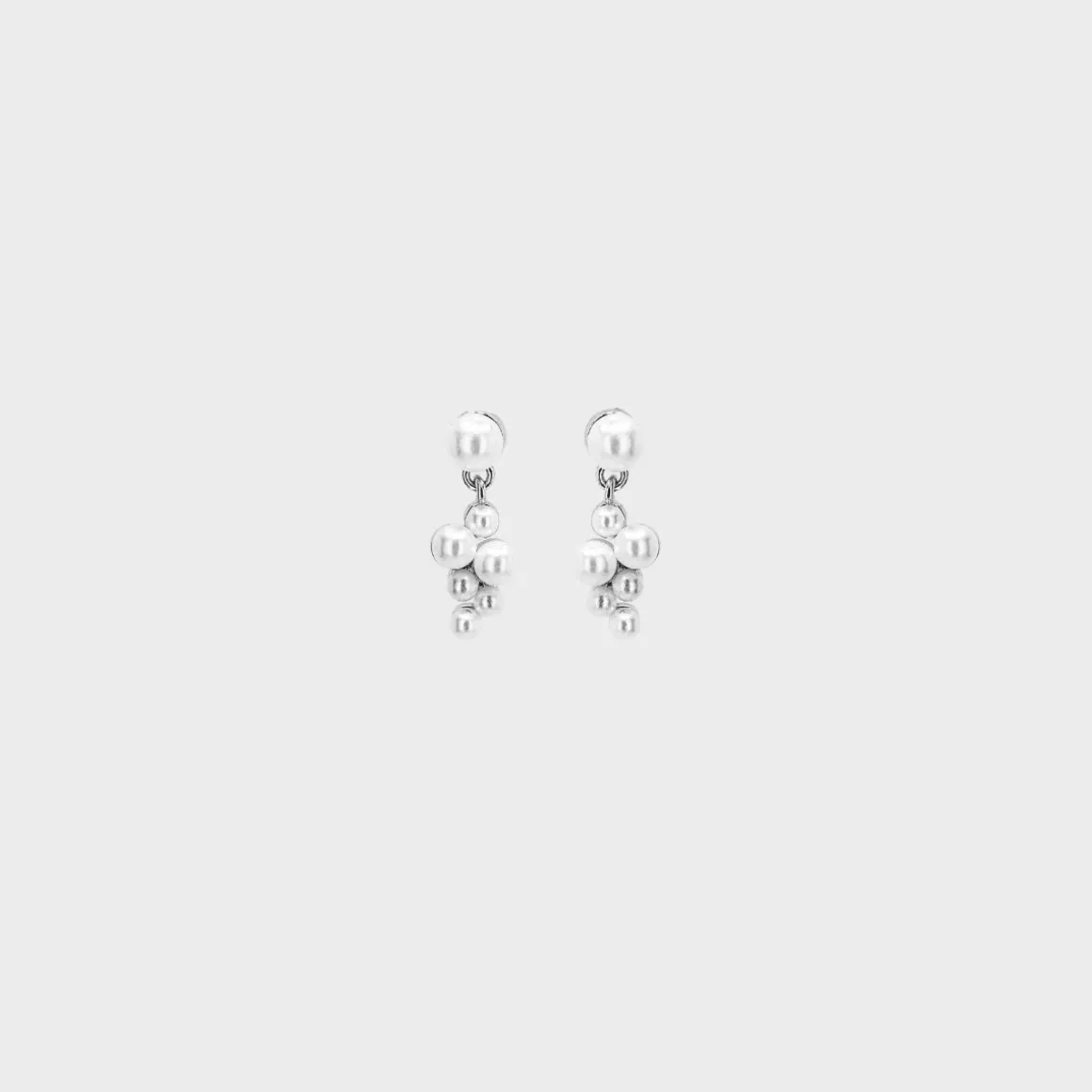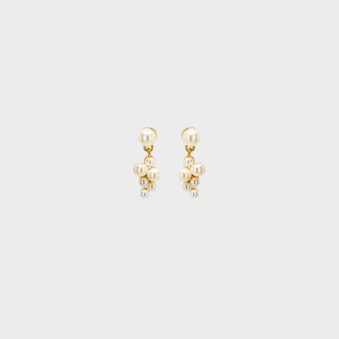 Disse smukke perleøreringe er designet med vedhæng af flere perler, der skaber et chunky og feminint look. Den legende sammensætning af perler tilføjer dybde og elegance til dit outfit, hvilket gør dem perfekte til både hverdagsbrug og særlige lejligheder.