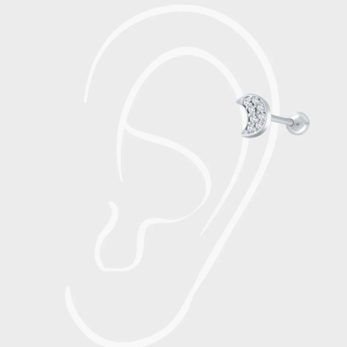 Til alle vores sølv girlies derude, har vi denne smukke månepiercing med små zirkoner.
