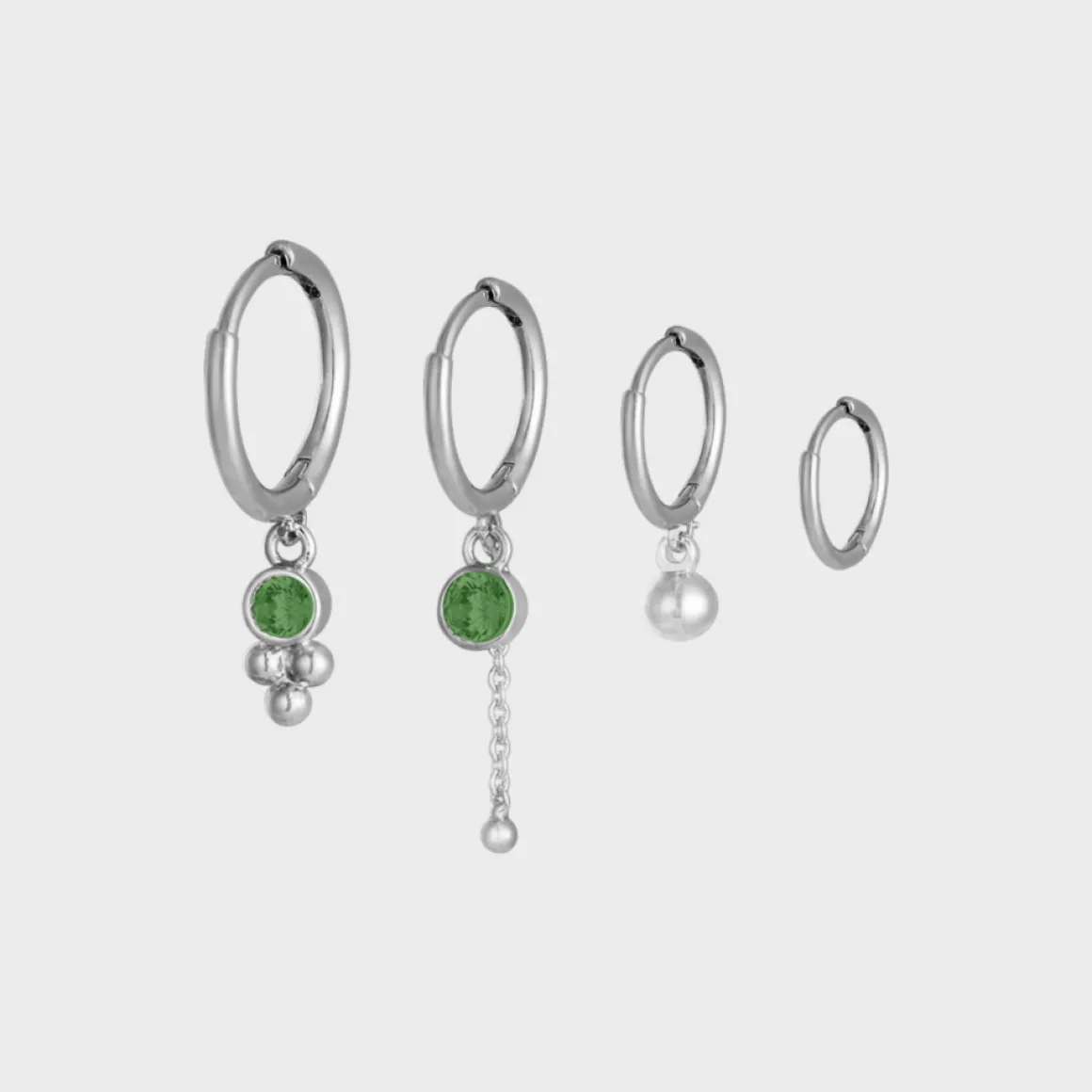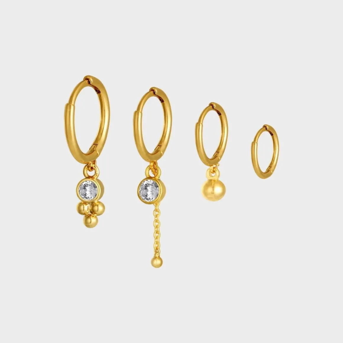 Dette hoop sæt består af 4 hoops øreringe der matcher hinanden helt perfekt! Vi elsker at bruge ørerringe sæt, da det gør stylingen af smykker så meget nemmere! Sættet består af: