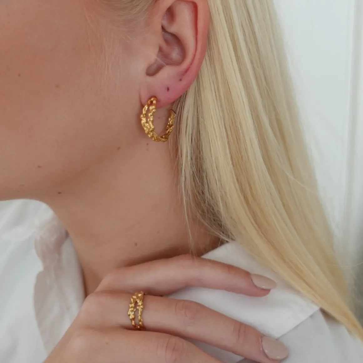 Vores Mocca Mix er det perfekte rustikke sæt med tekstur smykke sæt, men masser af detaljer og flotte former. Vores Mocca ring har længe været en vores bedst sælgende smykker, og i selskab med Mocca øreringen skaber de det smukkeste smykkesæt. Vores Mix serie er sat sammen af vores ansattes og kunders stylinger af smykker. Serien skal hjælpe med at give stylinginspiration og komme med gaveidéer. Er man interesseret i kun ét af smykkerne, kan du altid finde dem til salg på hjemmesiden. Du finder Mocca øreringene her og Mocca ringen her .