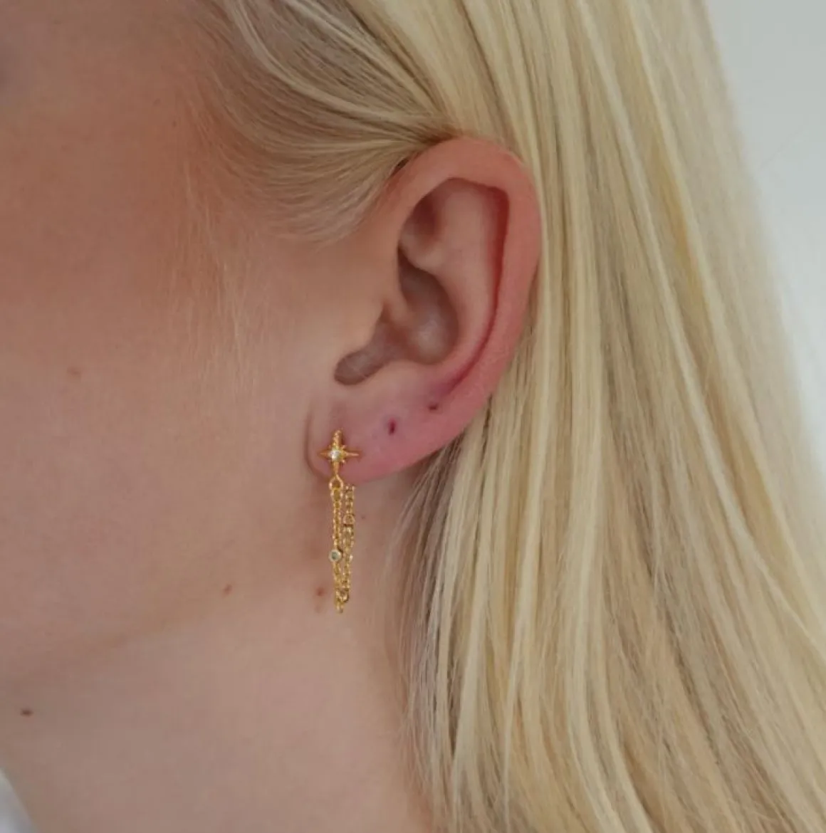 Fine kædeøreringe med massere detalje. Komplet looket med vores Polaris Ørestikker !