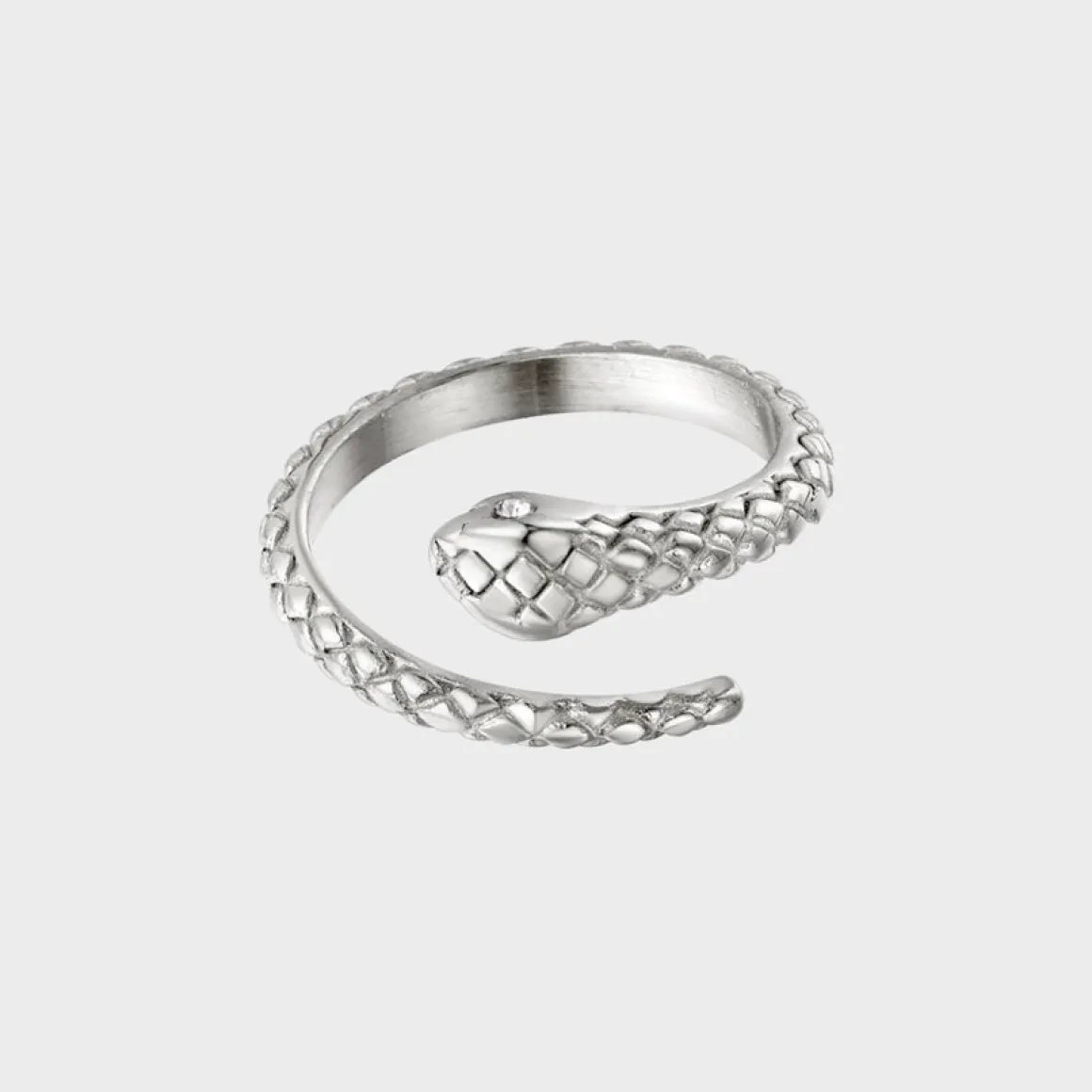 Er du til det mere moderne og rå look? Så er vores slange ring måske noget for dig! Den snoede ring passer sammen med dine basis smykker, og kan gøre et hvert outfit mere stilfuldt! Snake ringen er blandt andet god til at stacke sammen med andre ringe, i både guld og sølv looks! Er du mere på udkig efter et smykkesæt så kan være slange fingerring parres med en cool halskæde . Næsten alle vores ringe er regulerbare og justerbare og kan derfor passe på alle, både mænd og kvinder.