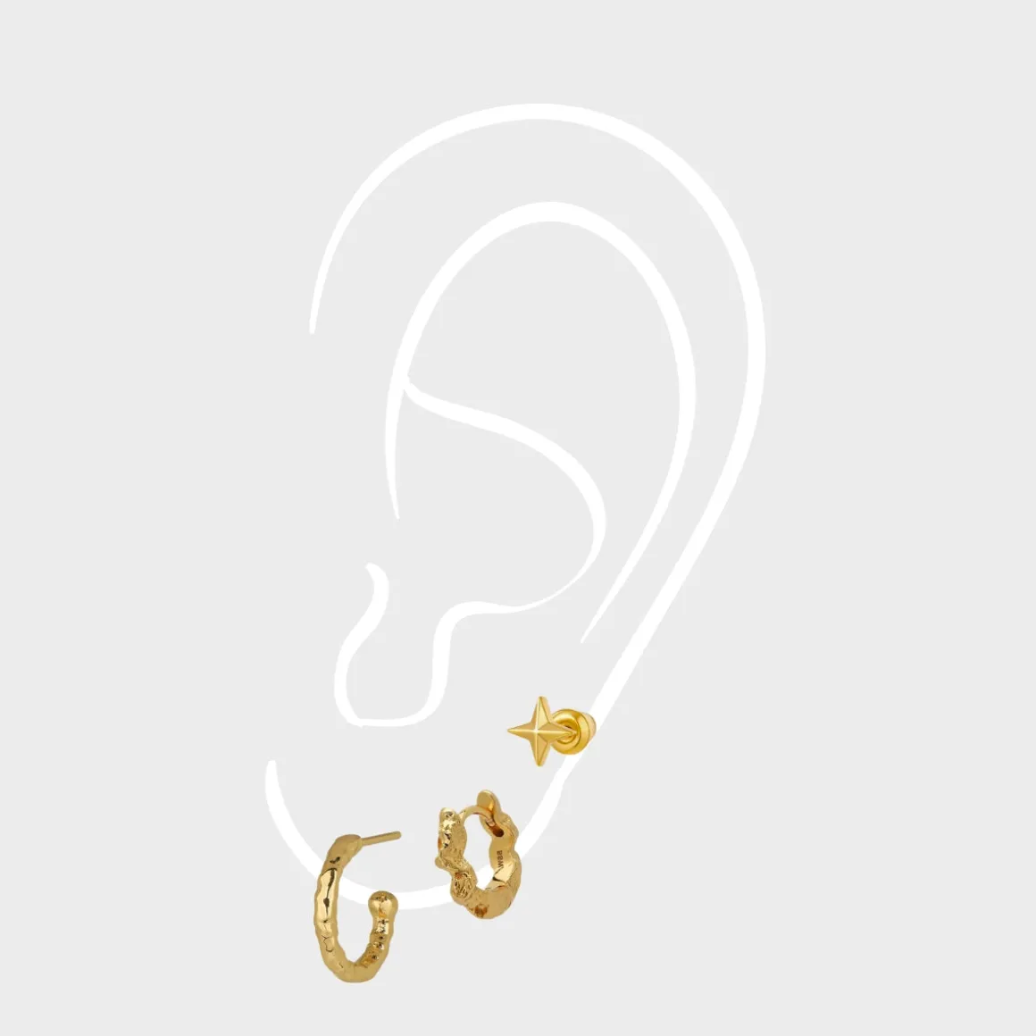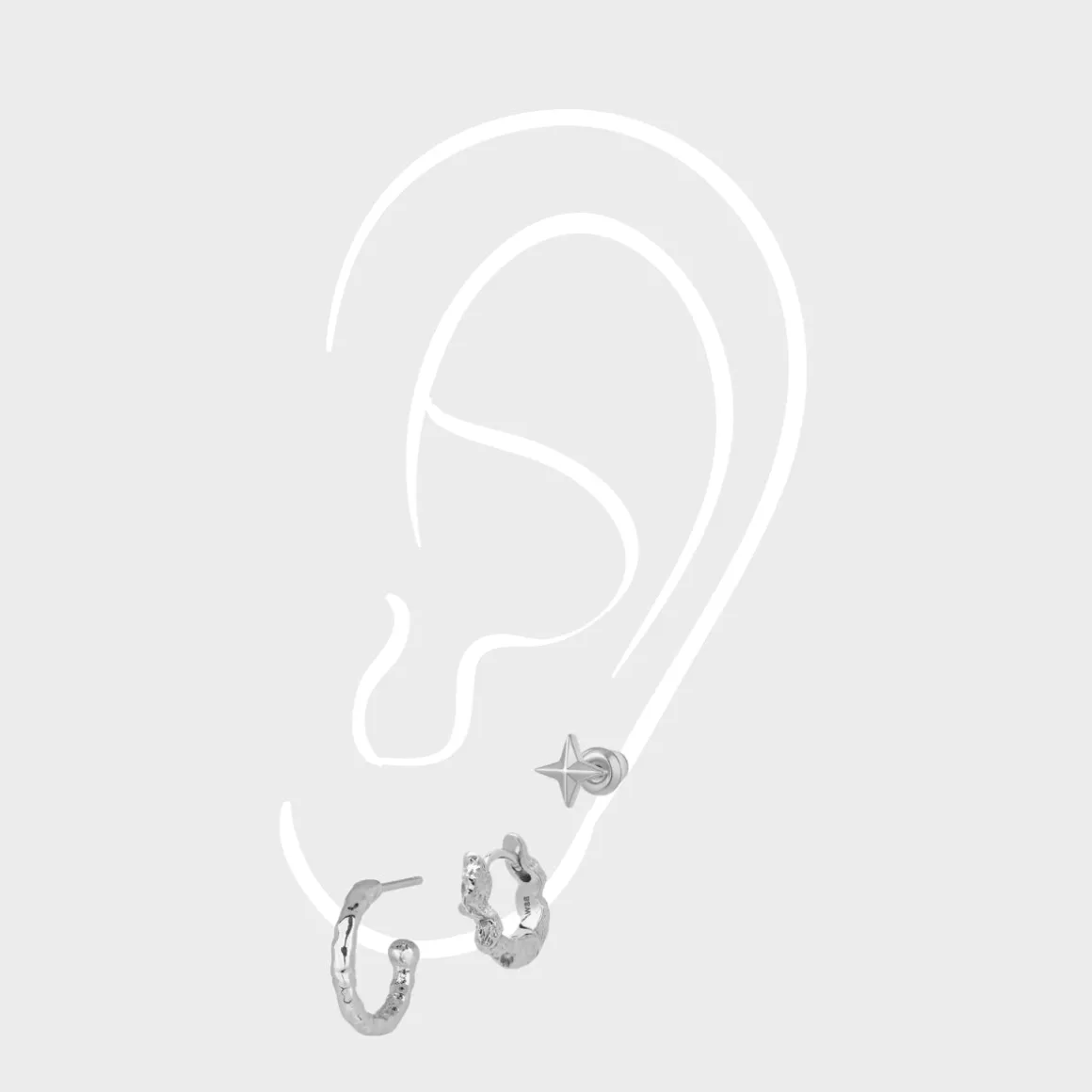 OBS! Sættet består kun af 3 individuelle øreringe, så ønsker du 3 øreringe til hvert øre, skal du bestille 2 par
